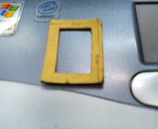 提出書類につける顔写真、大きいまま持ってくる人が多いので、ダンボールの端っこで作った4センチ×3センチの、なくしたら困る大事なもの。